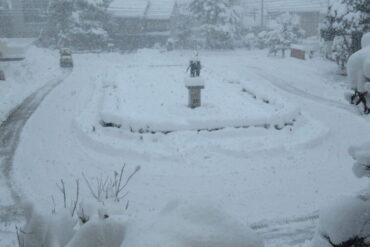 今朝の校舎前の様子です。日中も雪が降り続く予報です。足元に留意され、時間に余裕をもってお越しください。