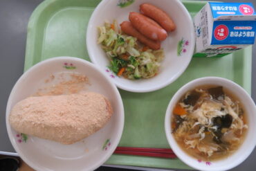 *給食の揚げパンは最高においしいです。どうしたらこんなにふわふわで軽い揚げパンになるのか、とっても不思議です。スープや和え物の組み合わせもばっちりでした。ごちそうさまでした。