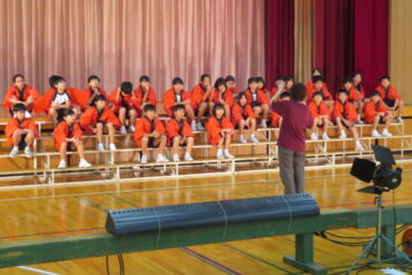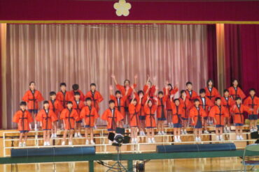 群読は、強弱やリズム、音や言葉の重なりを工夫しながら、友達と声を重ね合わせるところに醍醐味があります。おなかの底から声を張り上げる感覚、自分の声が友達と重なり合う感覚。心地よい一体感が生まれています。