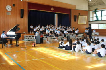先日の学習発表会で保護者の方にも聴いていただいた合奏「アメリカン・パトロール」を披露し、そして、他の学校の合奏も鑑賞しました。