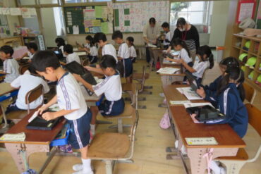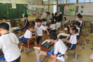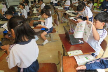 学習専用端末を使ってQRコードを読み込み、デジタルコンテンツを活用する学習をしました。ICT支援員さんにも教えていただきながら実際にやってみました。教科書にはたくさんのコンテンツが掲載されています。それを自由に活用できれば、学習の幅が広がります。