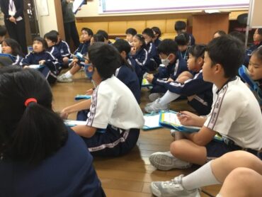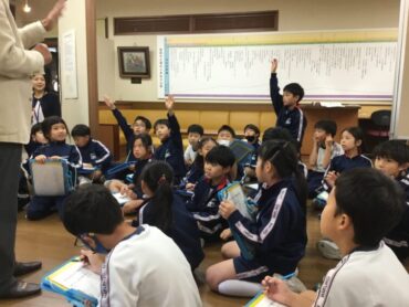 質問タイムでは、昔の校舎や校旗について、分かりやすく教えていただきました。