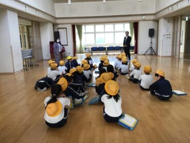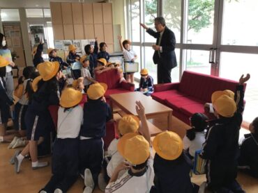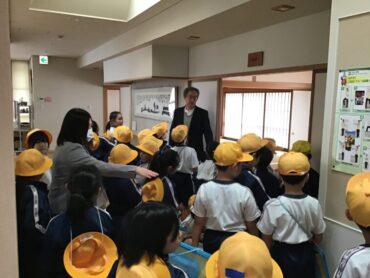 公民館の職員の方からのお話を聞いて、それぞれの部屋でどんなことをしているのか、公民館にはどのような工夫があるかを知ることができました。探検の最後には、たくさんの質問にも答えていただきました。