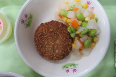 *米粉のシチューがとてもまろやかでした。豆がたくさん入ったサラダはたんぱく質もたっぷりで栄養満点だなと思いながらいただきました。ごちそうさまでした。
