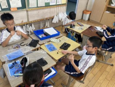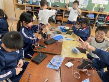 2025.11.5 5年生 2025.11.4 5年生 図画工作科「見つけて ワイヤーワールド」 5年生は図画工作科の時間に、ワイヤーアートに挑戦しています。 初めて針金を使う活動です。ペンチを使って針金を曲げたりねじったりしながら、イメージを広げ、作りたいものを表現しています。