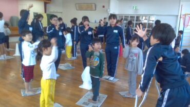 2025.11.14 6年生 全校生 2025.11.12 高岡保育園との交流(6年生) 6年生は総合的な学習の時間に、児童会スローガン「みんなを幸せ 協力し合い 笑顔いっぱいにしよう」の実現に向けて話し合い、身近な地域の人たちも笑顔いっぱいにしようと、高岡保育園の年長さんとの交流会を計画しました。交流会当日は、保育園のみなさんも自分たちも笑顔になることができて、6年生は達成感を感じたり、課題を見つけたりしました。