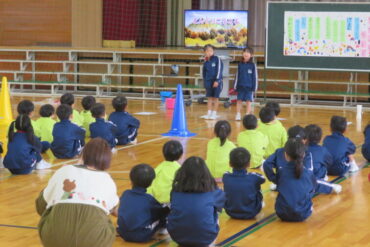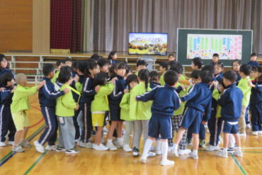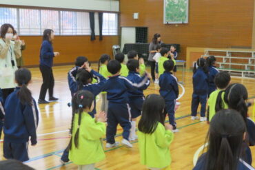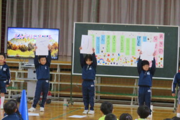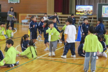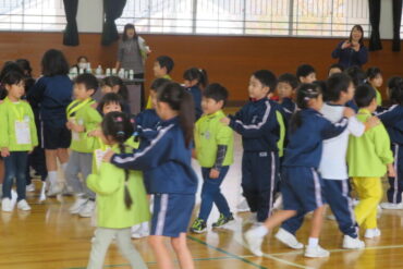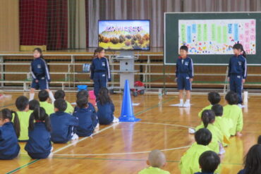 ゲームをしたり、1年生が考えた遊びで楽しんでもらったり、一緒に歌を歌ったりして、楽しい時間があっという間に過ぎていきました。