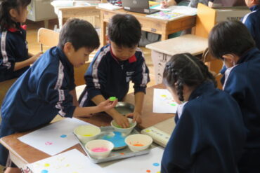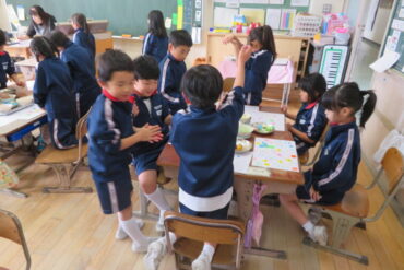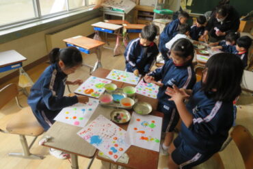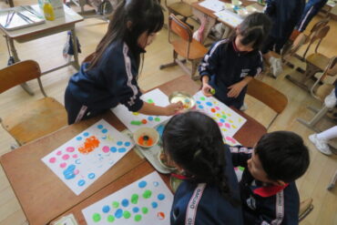 2025.11.26 1年生 図工「スタンプぺったん~キャップ編」