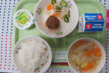 *ハンバーグが星型で、食べるのがもったいないくらいでした。サラダはいつものごまサラダにこんにゃくが入っていて食感がちがってよかったです。ポトフのじゃがいもがほくほくでおいしかったです。ごちそうさまでした。