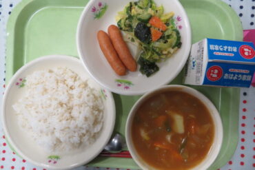 ごはん、牛乳、和風カレー、あらびきウィンナー、海藻サラダ