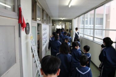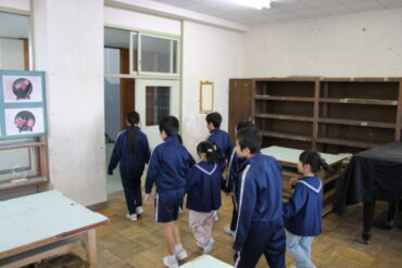 一緒に手をつないで、図書室や音楽室、理科室などを歩きました。