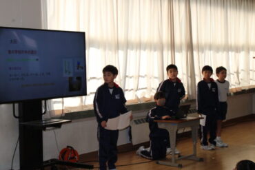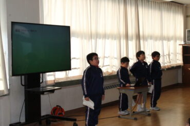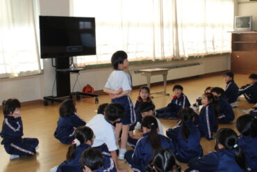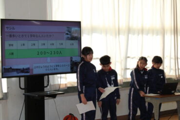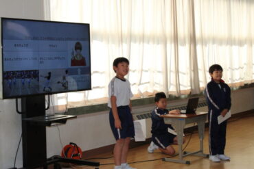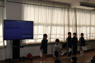 3年生は、2学期の総合で「タイムスリップ!ばくろう」と題し、博労小学校の歴史について調べてきました。博労博士を目指して、おもいで館を見学したり、館長さんにインタビューをしたりしました。今日は、その成果を2年生に発表しました。子供たちは、2年生に分かりやすく伝えられるようにスライドも準備してきました。