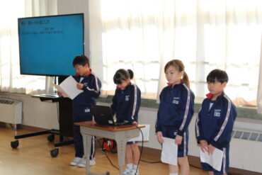 3年生は、2学期の総合で「タイムスリップ!ばくろう」と題し、博労小学校の歴史について調べてきました。博労博士を目指して、おもいで館を見学したり、館長さんにインタビューをしたりしました。今日は、その成果を2年生に発表しました。子供たちは、2年生に分かりやすく伝えられるようにスライドも準備してきました。