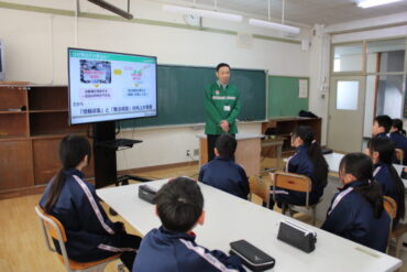 14日、セブン&アイ・ホールディングスの方々をお招きし、コンビニエンスストアでの情報活用について出前授業をしていただきました。