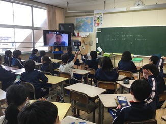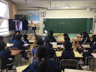 4年生は、「ICTを活用した海外交流学習」として、中国・大連在住の川村富山県大連事務所長さん、元富山県国際交流員で、インド・アンドラプラデシュ州在住のダーサリ・ラメーシュさんとつなぎ、インドについてのお話を聞きました。
