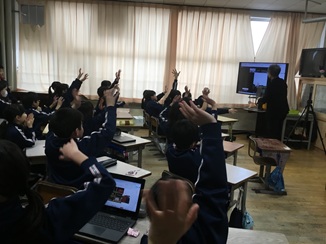 ということで、英語で自己紹介をしたり、高岡市(ドラえもん、雨晴、雪)の紹介や博労小(児童数や、教科、給食)の紹介をしたりしました。