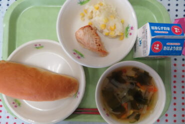 2026.3.2 NEW 今日の給食 今日の給食(3月) 3月2日(月) コッペパン、牛乳、鶏肉の照り焼き、コーンポテト、わかめスープ *わかめスープは、出汁がしみ出ていておいしかったです。ごちそうさまでした。 5年 給食委員