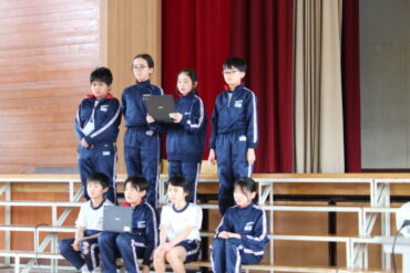 最初は、4年生の総合の学習の発表でした。4年生は、環境やSDGsについて調べ、考えました。自分たちにできることは小さなことですが、その小さなことから始めなければ何も変わりません。その大切なことに気付かせてくれる発表でした。