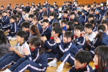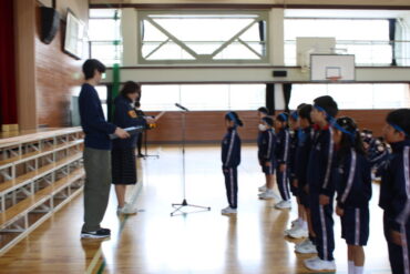 次は、校内大なわ8の字跳び大会で新記録を打ち出した3年青団の表彰です。