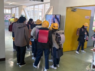 足を止めて見入る子がたくさんいました。中でも5年生は、今年の総合的な学習で、地域の防災や減災について考えたので、とりわけ関心が高かったようです。